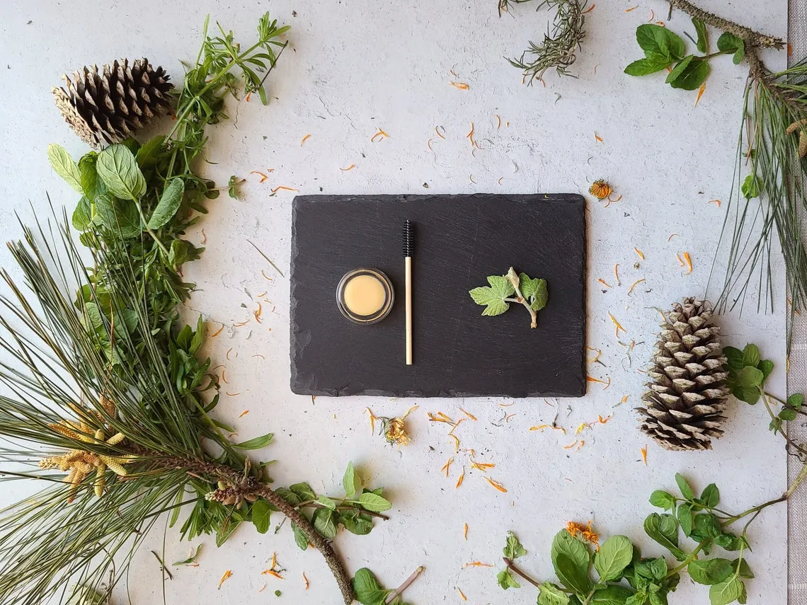 Materials: Organic Argan Oil, Organic Castor Oil, Organic Beeswax, Stearic Acid, Silk, Silica, Organic Rosemary Oil